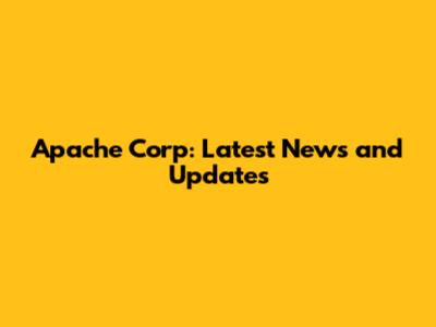 Apache Corp: Latest News And Updates