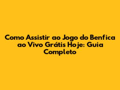Como Assistir Ao Jogo Do Benfica Ao Vivo Grátis Hoje