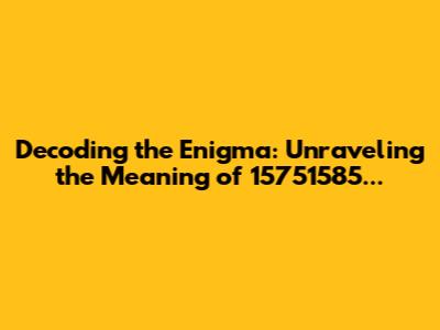 Decoding The Enigma: Unraveling The Meaning Of 15751585...