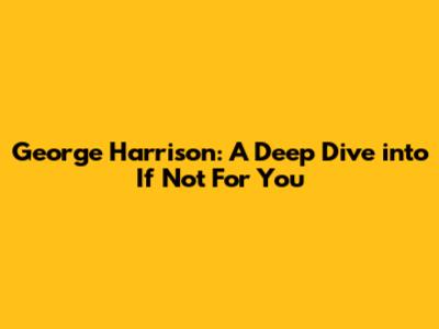 George Harrison: A Deep Dive Into 'If Not For You'