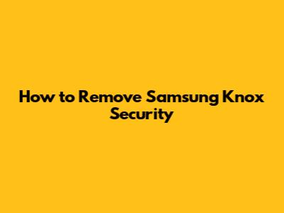 How To Remove Samsung Knox Security