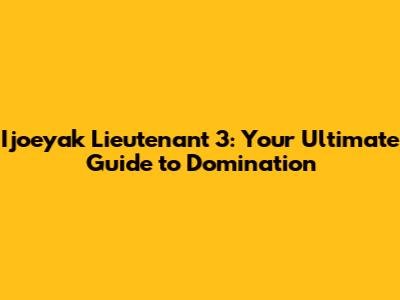 Ijoeyak Lieutenant 3: A Deep Dive Into Gameplay, Strategy, And Community