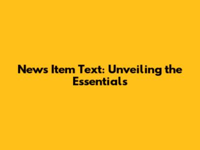 News Item Text: Unveiling The Essentials