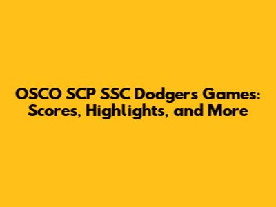 OSCO SCP SSC Dodgers Games: Scores, Highlights, And More