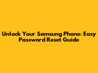 Unlock Your Samsung Phone: Easy Password Reset Guide