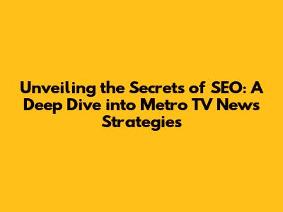 Unveiling The Secrets Of SEO: A Deep Dive Into Metro TV News' Strategies