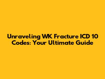 Hey guys! Let's dive deep into the world of medical coding, specifically focusing on WK fracture ICD 10. If you're a healthcare professional, medical coder, or just someone trying to understand medical bills, you've likely stumbled upon these codes. They might seem a bit daunting at first, but trust me, they're crucial for accurate diagnosis, billing, and statistical tracking of injuries. This article is all about demystifying the WK fracture ICD 10 codes, breaking them down so you can navigate them with confidence. We'll explore what 'WK' signifies in this context, the specific ICD-10 codes associated with these fractures, and why understanding them is so important for patient care and administrative processes. So, grab a coffee, get comfortable, and let's get started on this coding journey!